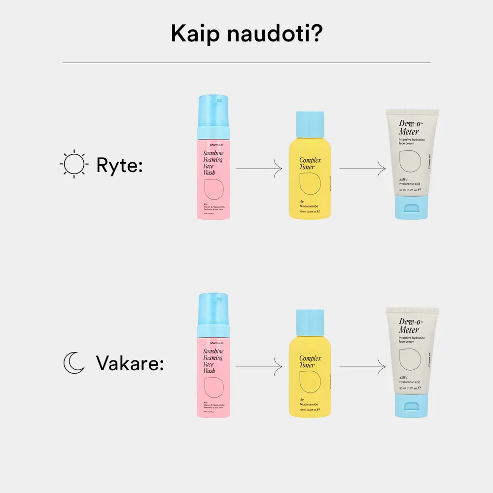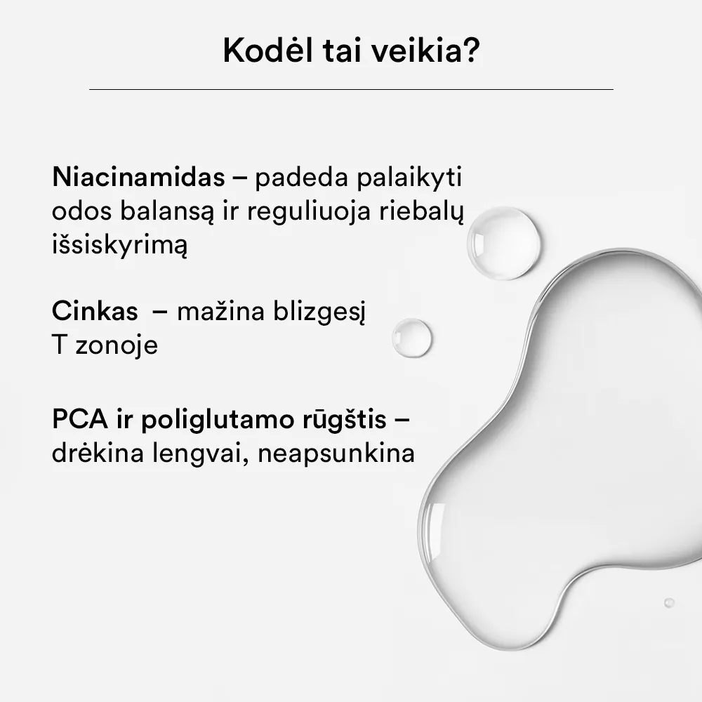 Trumpa rutina mišriai odai, kai T zonoje norisi gaivos, o skruostams reikia komforto. Skirta pusiausvyrai palaikyti ir tolygesnės odos įspūdžiui. Paprasta ir lengva pradėti.